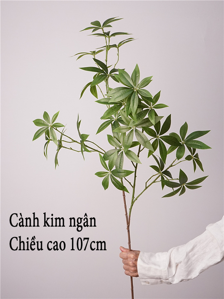 Cành kim ngân giả là một trong những dòng cành cây trang trí được ưa chuộng trong trang trí nội thất hiện đại. Được chế tác từ nhựa siêu bền, thân có lõi kim loại uốn nắn linh hoạt, tán lá xanh mướt tự nhiên, sản phẩm mang đến nét đẹp sang trọng, bền vững và đầy sức sống.