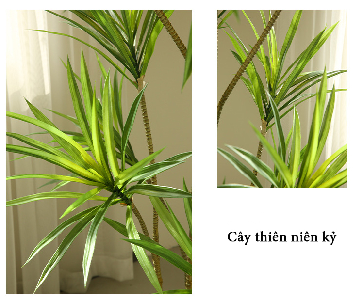Không giống các mẫu cây giả giá rẻ thường thấy, cây Thiên Niên Kỷ giả tại Linh Nga Decor sử dụng chất liệu film in 3D cao cấp, tạo độ chân thật vượt trội.