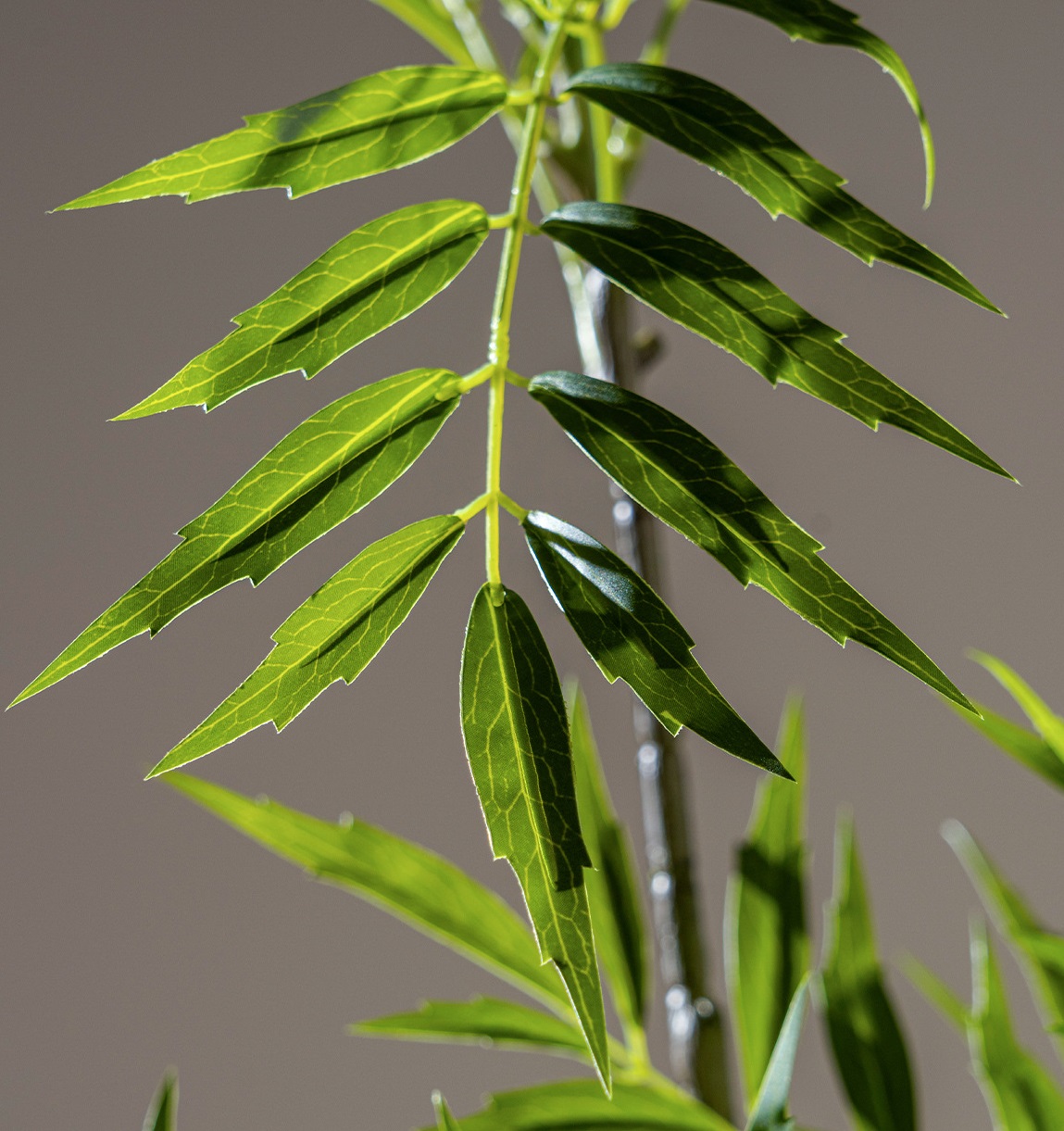 Chất liệu nhựa cao cấp, bền màu cùng cấu trúc chắc chắn giúp cây giữ dáng đẹp trong nhiều năm. Bề mặt lá được thiết kế tinh xảo, sắc nét, mang đến cảm giác chân thực như cây thật.
