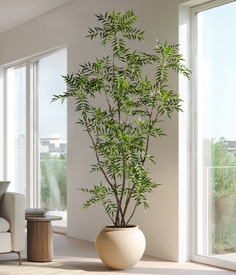 Trong nghệ thuật trang trí nội thất, cây cảnh luôn đóng vai trò làm mềm mại không gian và mang đến sự cân bằng thị giác. Cây hoàng liên nhiều nhánh giả với dáng tán xanh tươi, nhiều nhánh vươn cao, chính là lựa chọn tuyệt vời để thổi làn gió mới vào không gian sống hiện đại.