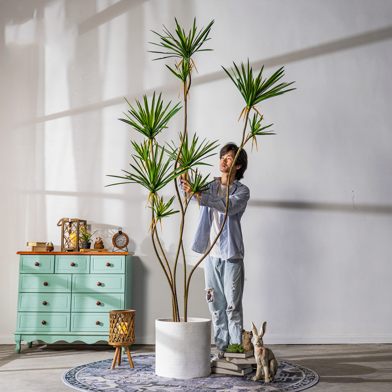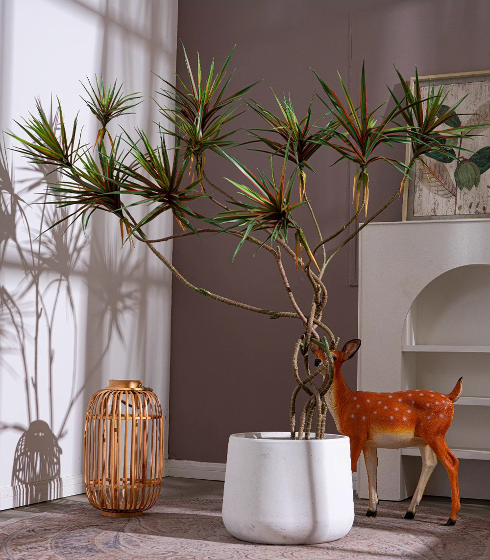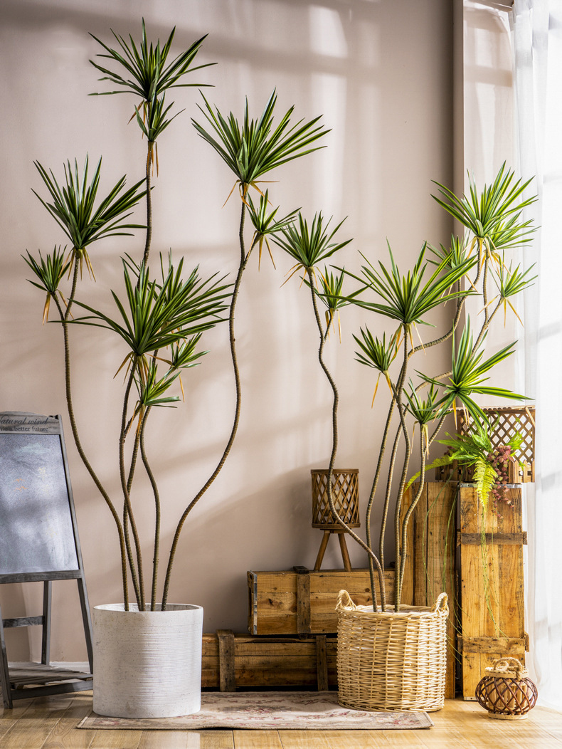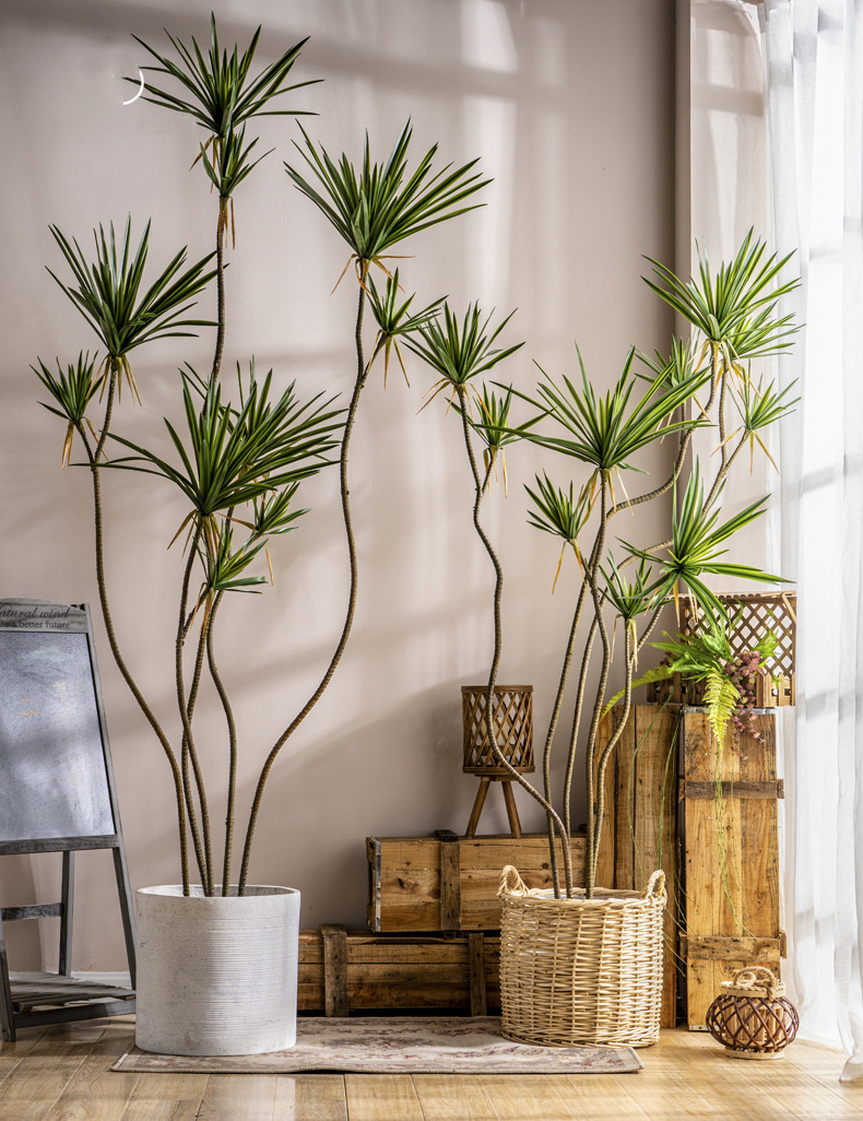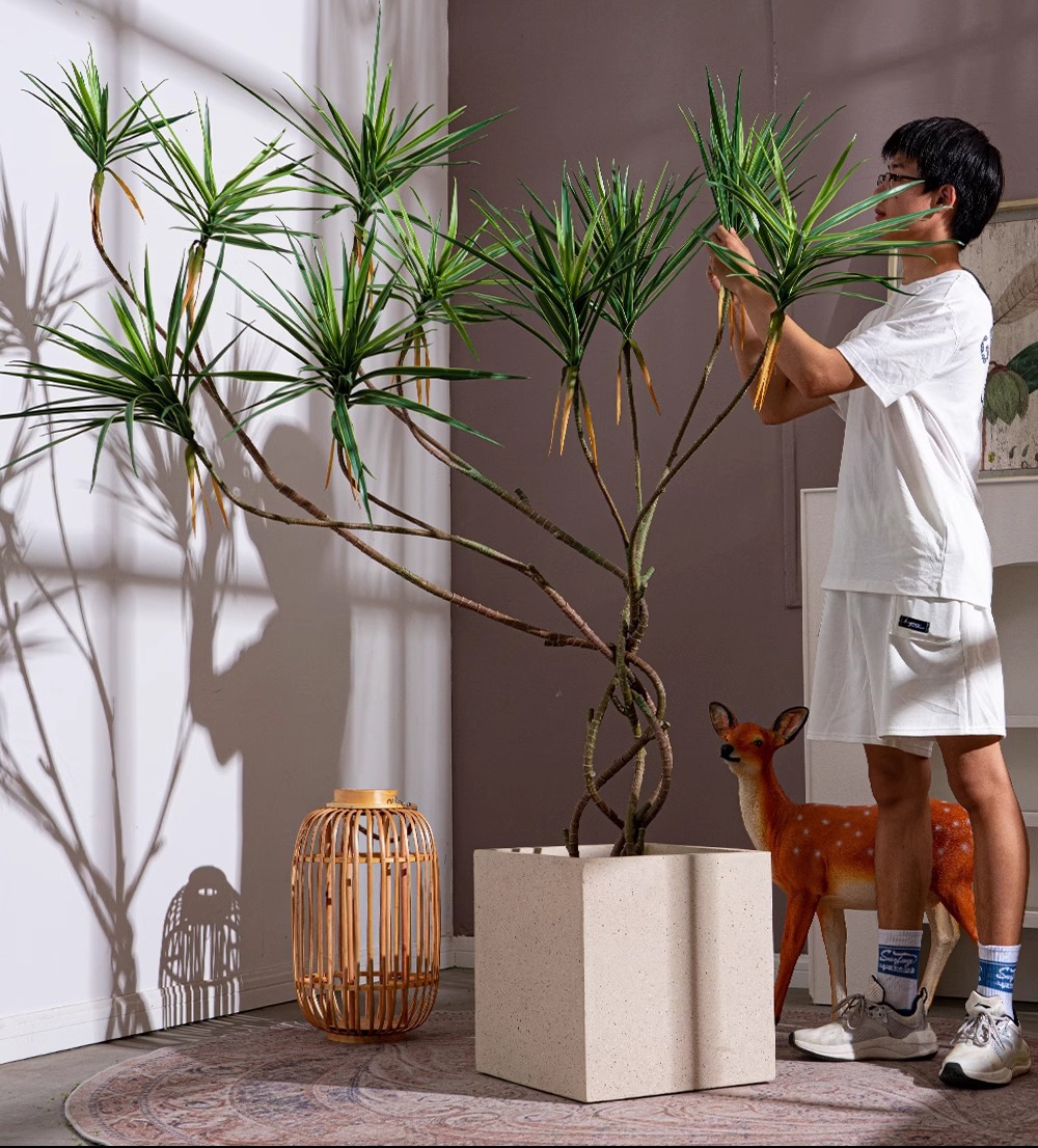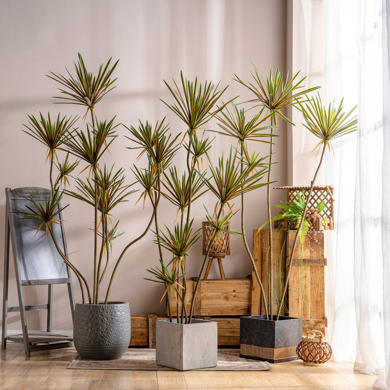 Cây huyết rồng giả có nhiều size khác nhau, từ loại nhỏ để bàn, loại vừa đặt ở phòng khách, đến loại lớn để decor sảnh hoặc studio.