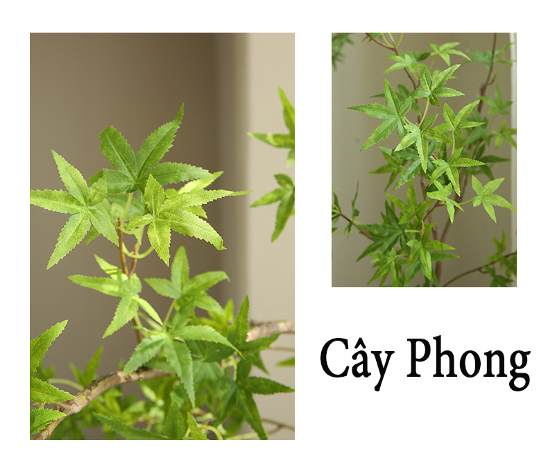 Được làm từ nhựa siêu bền, thân cây có lõi kim loại dễ uốn nắn, giúp người dùng tùy chỉnh dáng thế theo ý muốn. Tán lá xanh hoặc đỏ đặc trưng của cây phong được tái hiện chân thực, tạo nên sự khác biệt so với các dòng cây giả thông thường.
